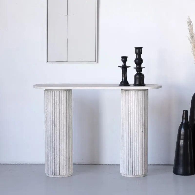 Console en Travertin naturel Colonna – Plateau rectangulaire et piètements striés