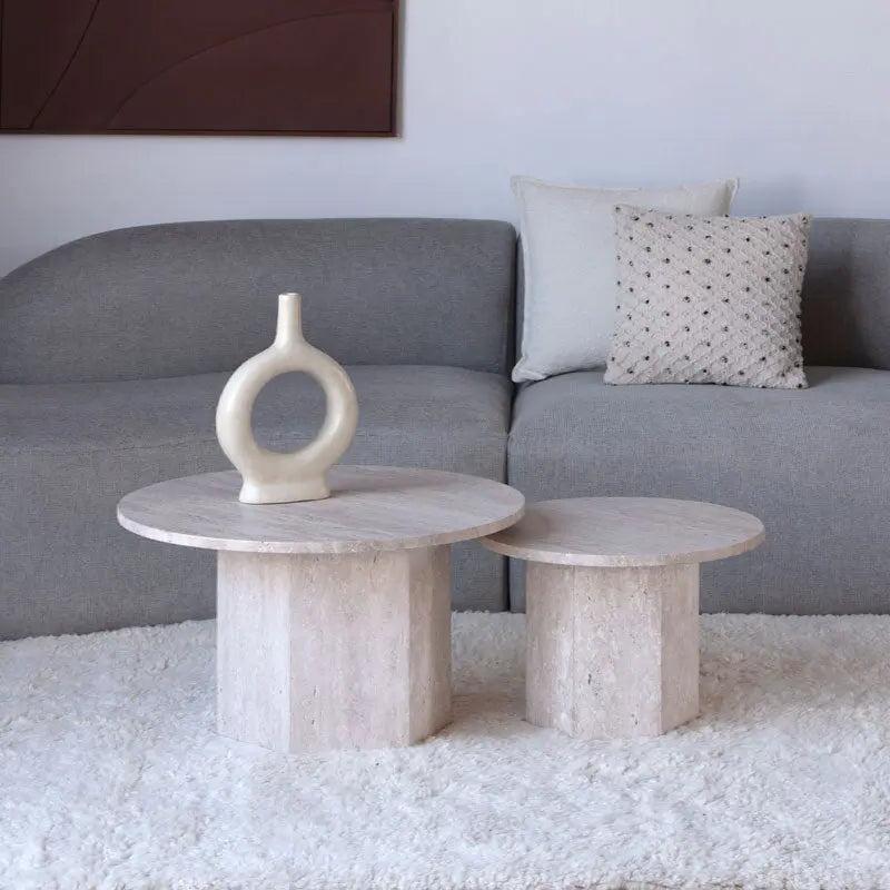 Pour une cohérence esthétique dans toute la maison, de nombreux clients associent leur console à une table basse en travertin ou à une table d’appoint en travertin.