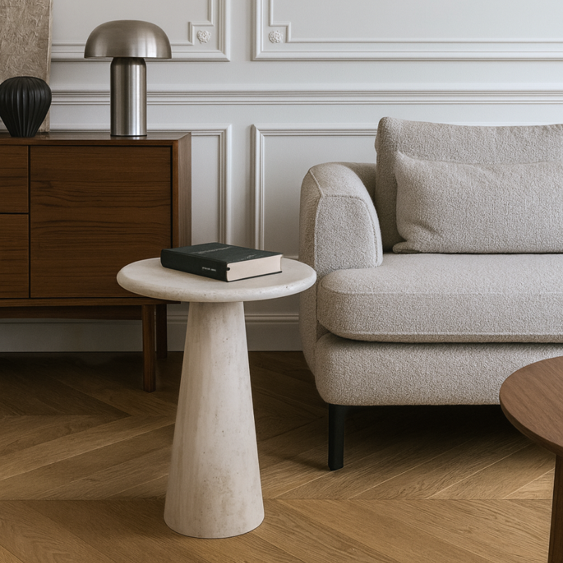 Chez Atelier Travertin, nous concevons des tables d’appoint en travertin qui allient sobriété, qualité et durabilité.