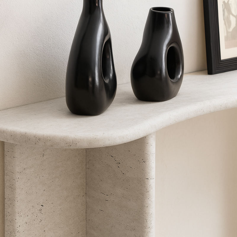 Console en Travertin incurvée Eclypse – Design organique et élégant