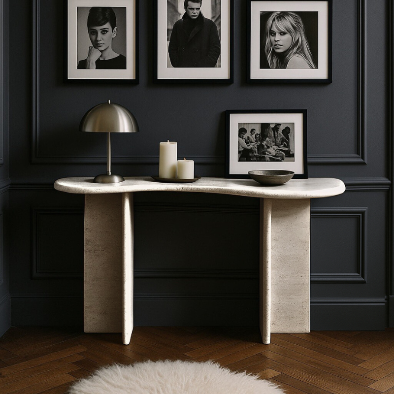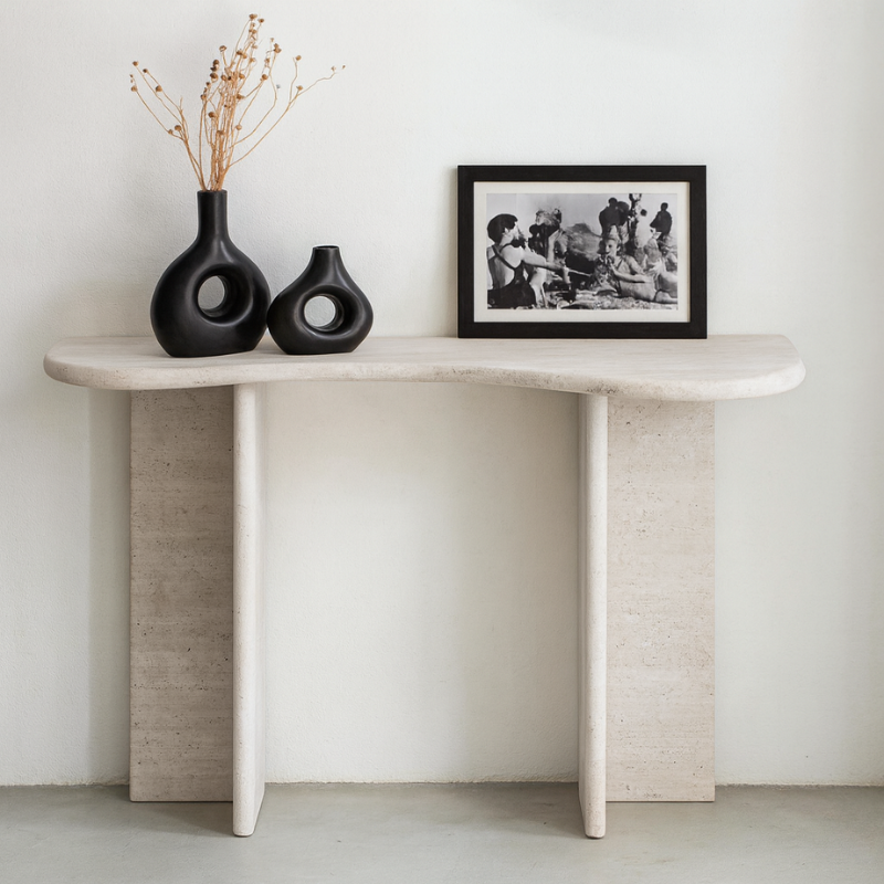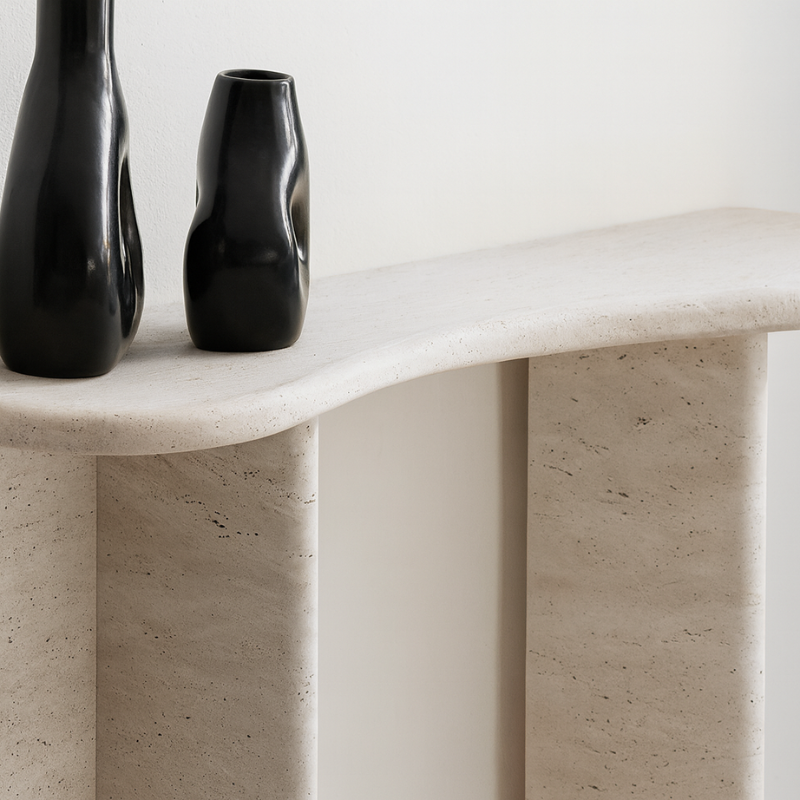 Console en Travertin Eclypse – Lignes organiques et design incurvé